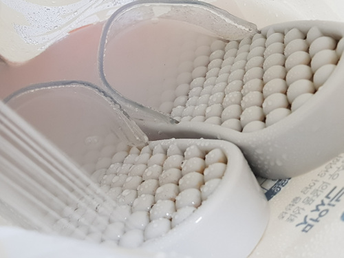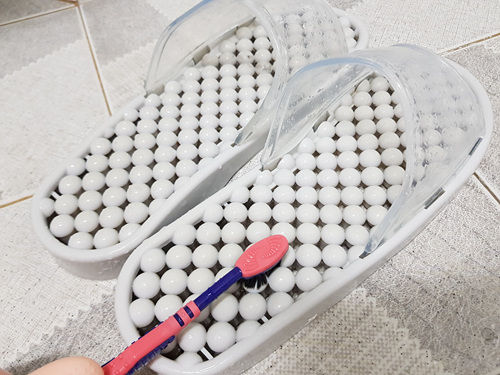 정말 버리는거 별로 없는 것 같죠.. 모아두면 나름 재활용이 되니까요. 과탄산소다를 넣은 욕실슬리퍼는 약 10분 정도 방치하고 난 뒤 칫솔을 이용해 한 번 더 세척하면 됩니다.