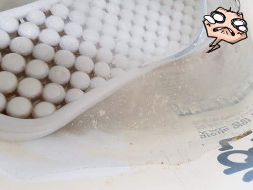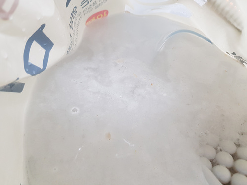 10분 후 비닐봉지를 열어 보니....깜놀..... ㄷㄷㄷㄷㄷㄷㄷㄷㄷㄷㄷㄷㄷㄷㄷㄷ 꼬질꼬질 때가 자연스럽게 흘러 나와 있더군요.