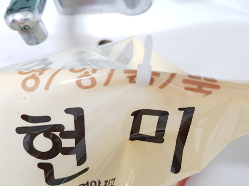 고무장갑 속에 들어 있던 고리는 이렇게 비닐봉지를 밀봉하고 꽂을때 사용하면 좋아요. 만약 이게 없다면 빨래집게를 이용해도 됩니다. 빨래집게 보다 사실 이게 더 꼼꼼하게 고정이 되더라고요.