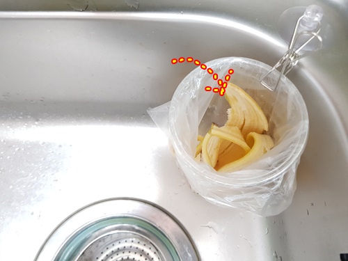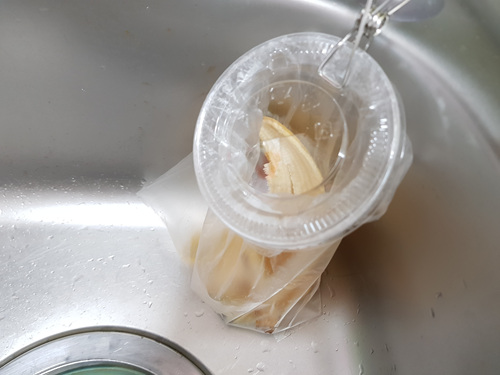 싱크대에 흡착한 뒤 음식물쓰레기를 비닐봉지에 버리면 됩니다. 물기가 있는 것은 싱크대 개수대 통에서 충분히 물기를 제거해 주시고 과일껍질등은 그냥 음식물쓰레기 통에 버리면 정말 깔끔하겠죠.