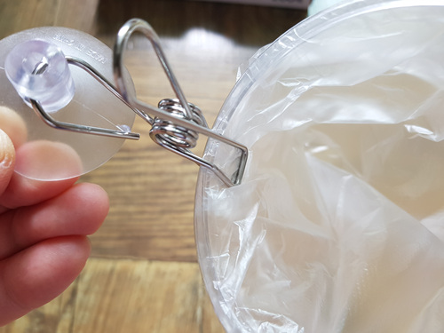 나머지는 싱크대에 고정할 수 있게 해 주면 되는데요. 전 집게를 이용했어요.
