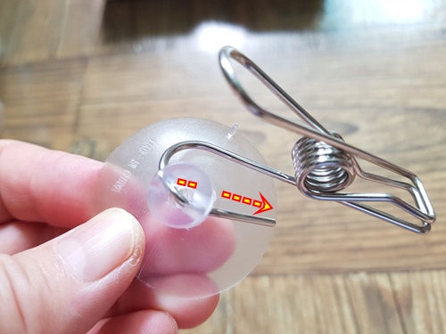 나머지는 싱크대에 고정할 수 있게 해 주면 되는데요. 전 집게를 이용했어요.