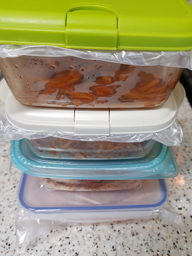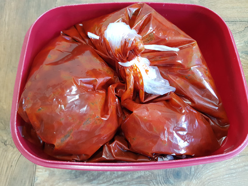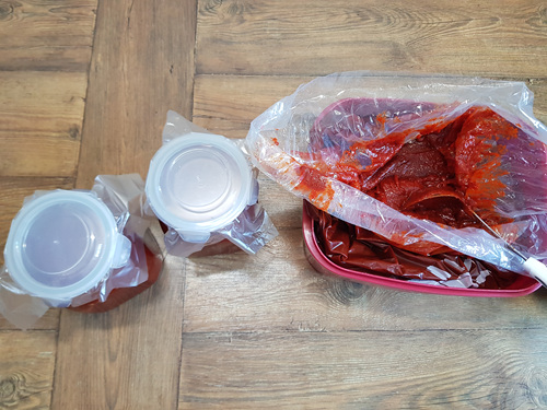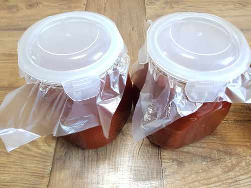 소분으로 포장한 후 남은 고추장은 비닐을 잘 묶어줘야 이 또한 냉장고에 넣었을때 냄새가 나지 않습니다.