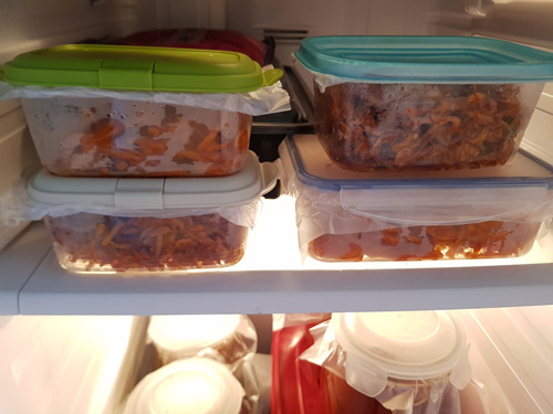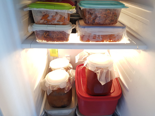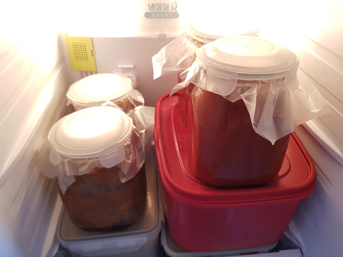 이렇게 소분으로 잘 담은 장류는 뚜껑을 잘 덮어야 냉장고 문 열때 냄새가 나지 않아요.