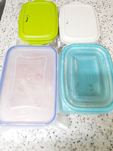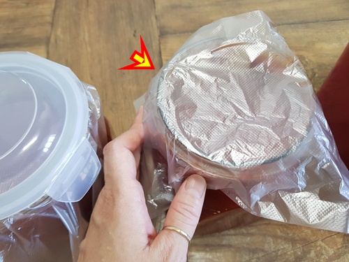 락앤락이든 일반 반찬통이든 1회용 비닐봉지만 덮어도 냄새가 스물스물 나오는 것을 방지합니다.