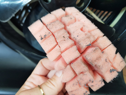 수세미가 더러워지는 만큼 선풍기는 깔끔하게 변합니다.