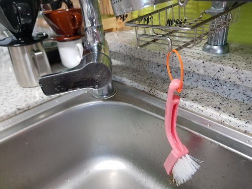 그외 싱크대 선반 곳곳에 케이블타이를 걸어 청소용솔이나 청소용칫솔을 걸어두면 편리하고 위생적입니다.