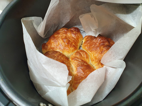 에어프라이어 용량이 작아 몇 개 굽지 못했지만 거의 빵집에서 나오는 수준이 되더군요.