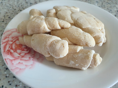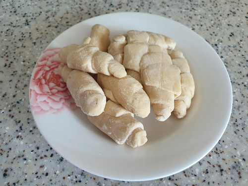 먼저 냉동생지를 접시에 펼쳐서 꺼내 놓습니다.