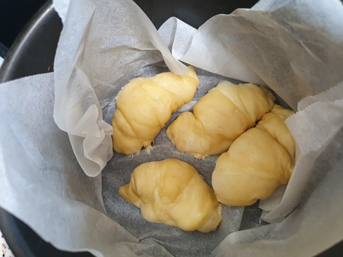 이때 실온에 따라 차이가 있긴 하지만 요즘같은 날씨엔 30분~1시간 정도면 크로와상을 할수 있겠더라고요.