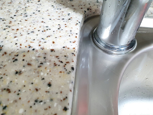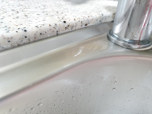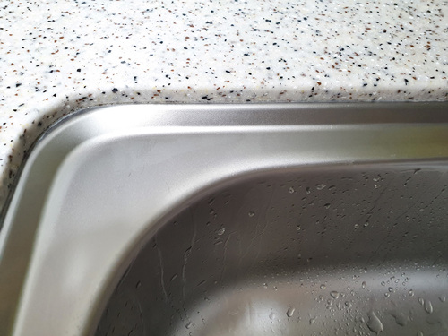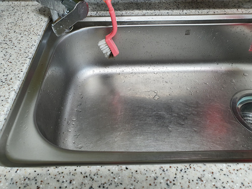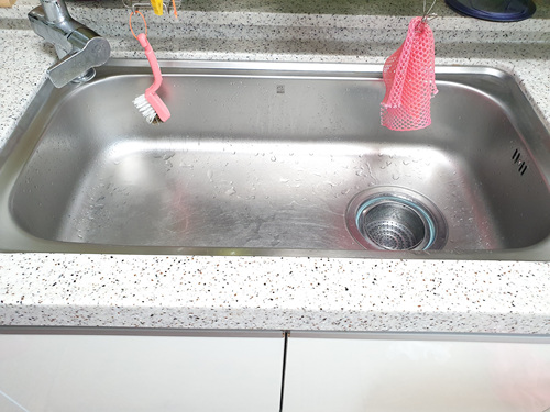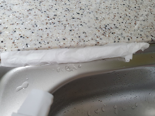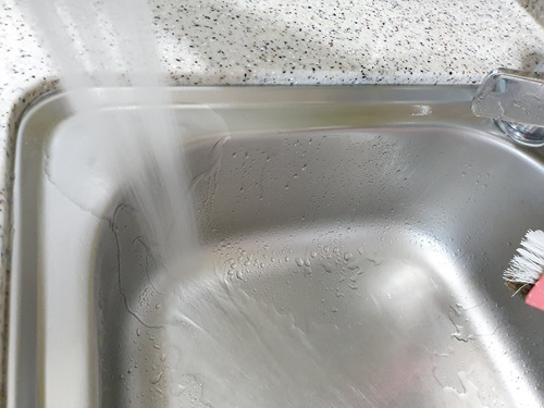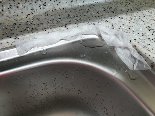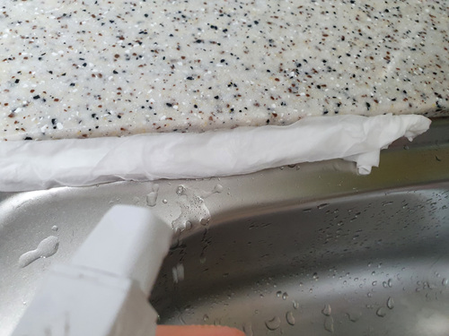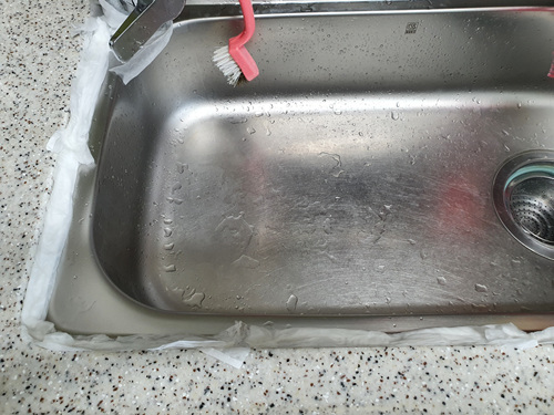 티슈 제거 후 뒷마무리는 물로 깨끗이 싱크대 곳곳을 헹궈 주시면 됩니다.