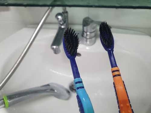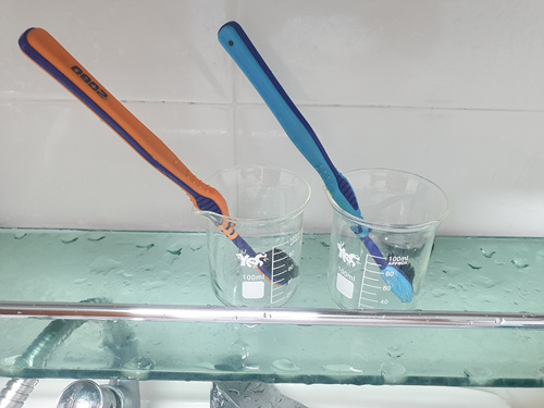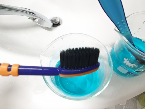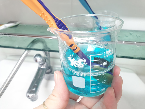 칫솔을 약 10분 간 구강청결제에 담근 뒤 꺼내 보니 상쾌한 향이 가득........ 물론 세균도 99.9% 사멸된다고 하니 너무 간단하게 칫솔살균이 가능하겠더라고요.