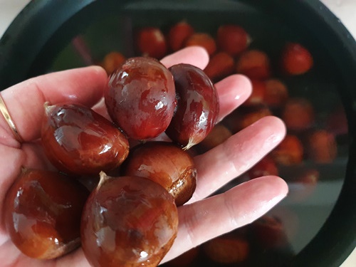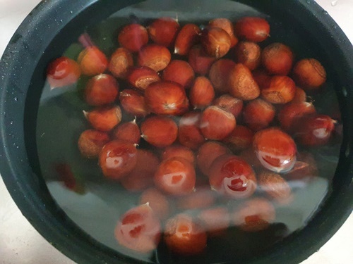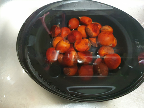 냉동된 밤이라 먼저 물에 담궈 준 후 삶아야 합니다.