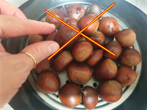 찌는 시간은 약 10분 정도면 됩니다. 그리고 뚜껑을 닫은 채 5분 정도 뜸을 들이면 더 확실하게 밤이 익어요.