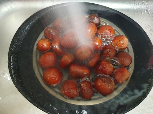 냉동된 밤이라 먼저 물에 담궈 준 후 삶아야 합니다.