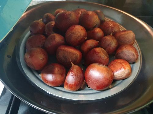 냉동된 밤이긴 하지만 바로 구입 후 냉동한거라 먹기에는 괜찮을 것 같아 냉동된 밤 모두 쪄서 먹기로 했습니다.