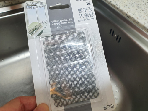 그래서 물구멍 방충망을 사용하고 남은 것이 있어 그것으로 싱크대 개수대 옆 구멍을 막았습니다.