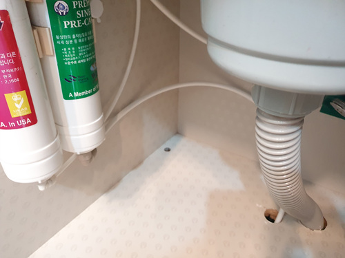 아참 .. 그리고 싱크대 아래 열어보면 물 내려가는 호수 연결 부위 주변도 꼼꼼히 막아 주어야 한다네요.