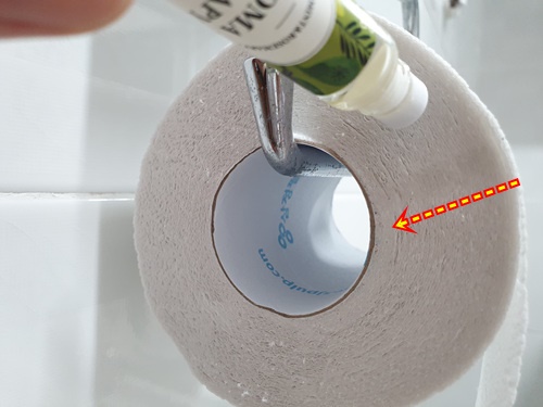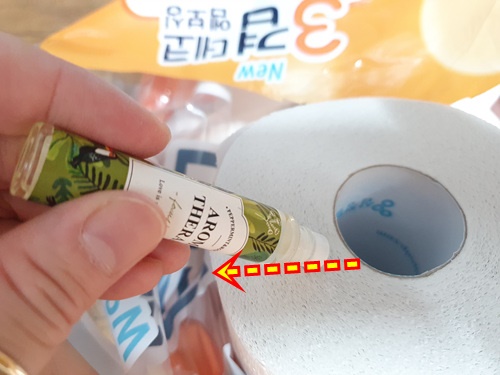 아로마테라피 오일을 한 줄로만 발라도 되겠더군요. 물론 이렇게 발라 휴지걸이에 걸어두면 휴지를 사용할때마다 휴지에서 향이 나서 완전 굿이겠다는 생각이 들었죠.