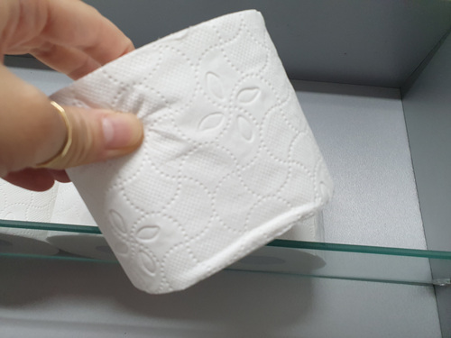 욕실선반에 아무리 뽀송한 수건을 올려 두고 선반 문을 닫아도 샤워 후 습기가 완벽히 차단되는게 아니잖아요. 이제 날씨도 추워지는 시기가 되면 욕실 문도 습관적으로 닫아야 하기에 수건은 치우고 그 자리에 휴지를 채워 넣었습니다.