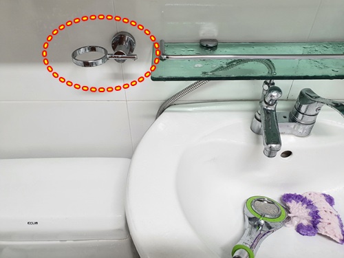 샤워기 걸이가 욕실에 달려 있어도 잘 사용하지 않게 되더라고요. 평소 편하게 샤워기를 사용하고 그냥 세면대에 올려 두었더니 세면대가 엉망이 되어 버렸더군요. 자세히 보지 않았다면 몰랐을 부분이었죠.