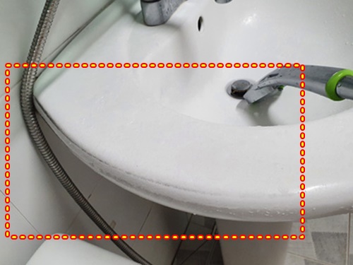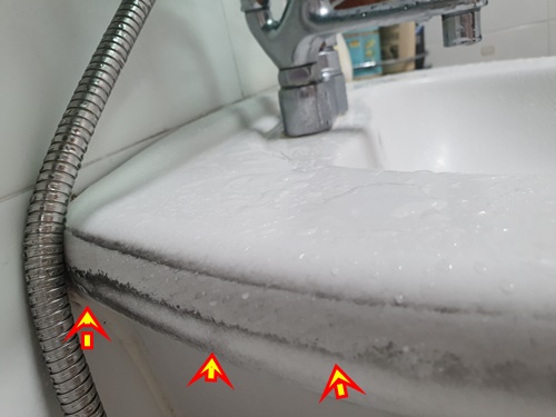 세면대를 청소하다 처음엔 곰팡이인 줄 알았는데 자세히 보니 샤워기 줄로 인해 세면대가 긁혀 시꺼멓게 되어 버린 것...