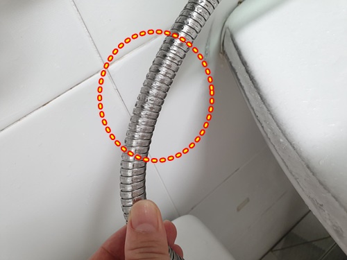 누구나 한 번쯤은 샤워기를 사용 후에 이렇게 세면대 위에 올려 두었을겁니다. 이젠 이 모습을 본 후엔 그러지 말아야겠다는 생각이 많이 들것 같아요.