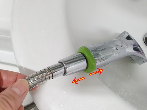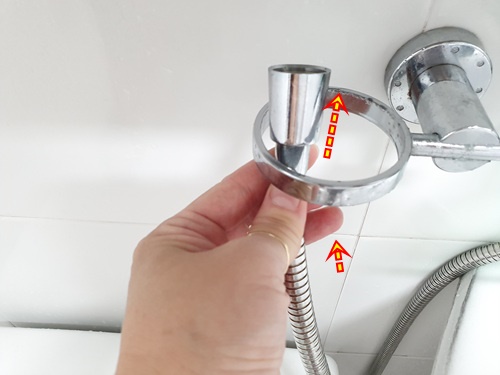 컵꽂이 속으로 넣어 다시 샤워기 헤드를 조립하는 것입니다. 그렇게 하면 샤워기 줄이 세면대에 닿는 것을 방지하고 샤워기를 사용하기도 편하겠더라고요.