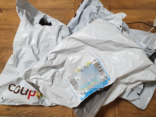 박스에 붙여진 것은 나름대로 잘 떨어지는데 비닐봉지에 붙어 있는 택배 스티커는 아예 떨어지지 않은 경우가 많습니다.