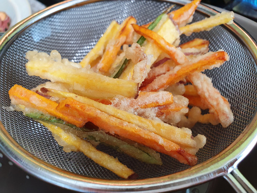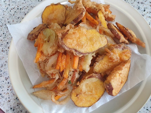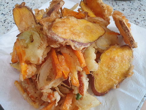바삭바삭 잘 튀겨진 채소 튀김이 되었습니다.
