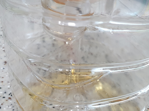 잘 걸러진 기름은 기름통에 부어서 사용하면 훨씬 편합니다.
