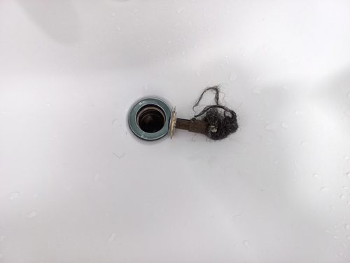 물이 그렇게 내려가지 않더니 역시나 머리카락이 꽉 막혀 있더라고요. 보통은 세면대에서 머리를 감지 않는데 이번에 백신을 맞고 힘들어 의자에 앉아서 머리를 감느라고 세면대를 이용했더니 이런 일이 생겼네요..