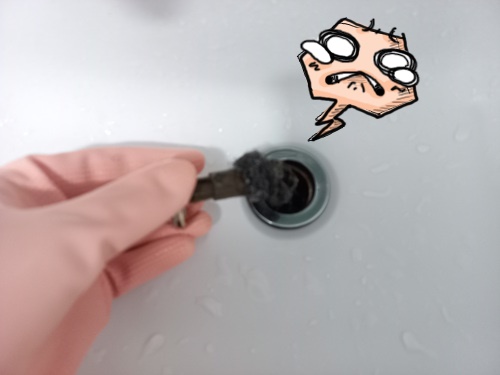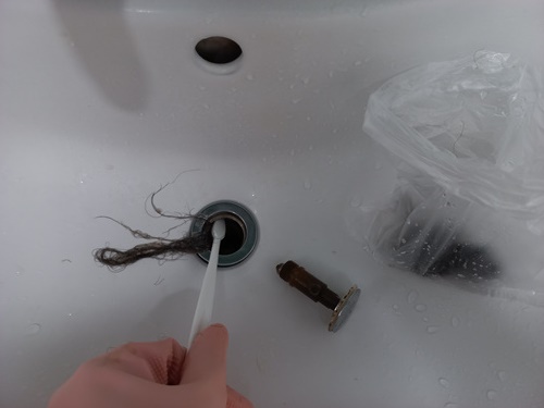 물이 그렇게 내려가지 않더니 역시나 머리카락이 꽉 막혀 있더라고요. 보통은 세면대에서 머리를 감지 않는데 이번에 백신을 맞고 힘들어 의자에 앉아서 머리를 감느라고 세면대를 이용했더니 이런 일이 생겼네요..