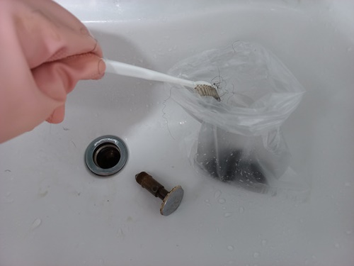 하여간 세면대는 물구멍 마개를 다 분리해 깨끗하게 머리카락을 다 제거했습니다.