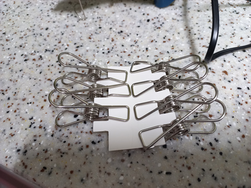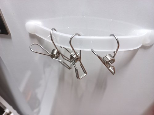 집에 굴러 다니는 집게를 손잡이에 걸어 주세요.