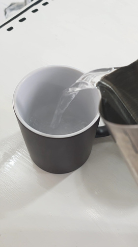 따뜻한 물, 음료, 커피 아무거나 넣어도 되요. 따뜻하기만 하면 됩니다.