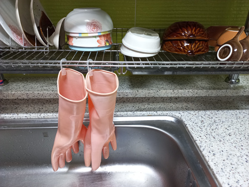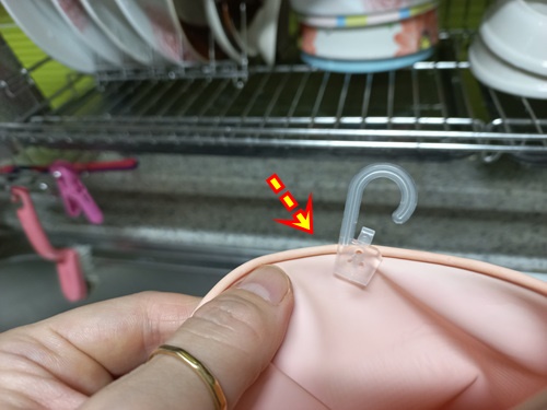 고무장갑에 걸어 두니 설거지 후 고무장갑도 잘 마를 뿐더러 무엇보다도 공기순환이 잘 되어 고무장갑 속도 청결하게 유지할 수 있습니다.