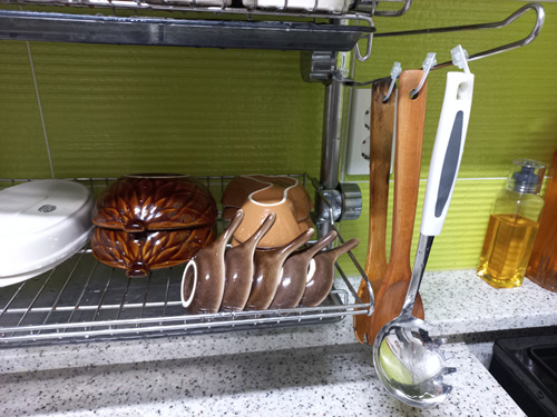특히 나무주걱 같은 경우엔 잘 건조되어 곰팡이가 생기는 것을 방지해 줍니다. 평소엔 설거지 후 그릇과 함께 뒀더니 물이 고여 있는 곳에 있어서 그런지 거뭇거뭇 해져 몇 개는 버렸답니다. 이제 잘 건조되어 그런 일은 없을 듯 합니다.