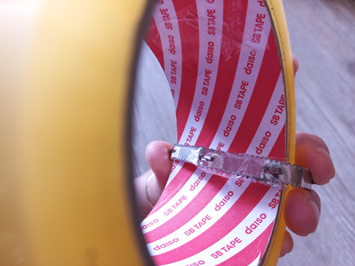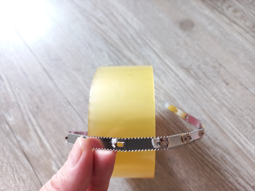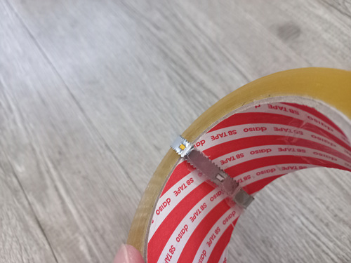 종이호일 칼날을 테이프 둘레에 붙여 줍니다. 테이프에 붙여 줄때는 조금 넉넉하게 붙여 주세요.