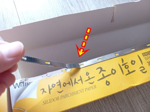종이호일을 다 사용한 후 열어 보면 종이호일을 자르는 칼날이 있는데요. 그것을 분리해 재사용합니다.