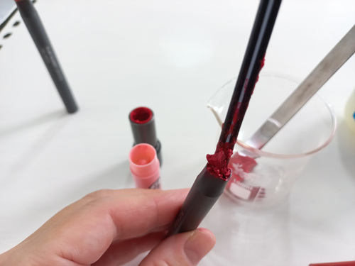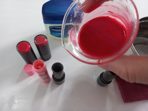 이제 빈 립스틱 통에 촉촉한 립스틱 립밤을 넣어 주세요.
