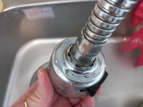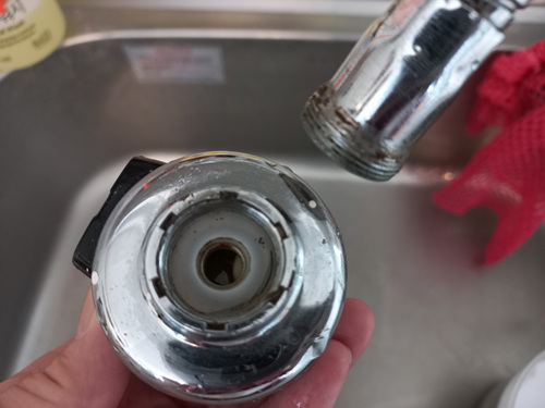 분리하니 분리된 곳도 녹이 끼어 지저분하네요. 보통은 분리를 하지 않고 그냥 겉만 씻는데 이제 그러지 맙시다. 싱크대 수전은 꼭 분리해서 세척해야 속까지 깔끔하게 세척이 됩니다.
