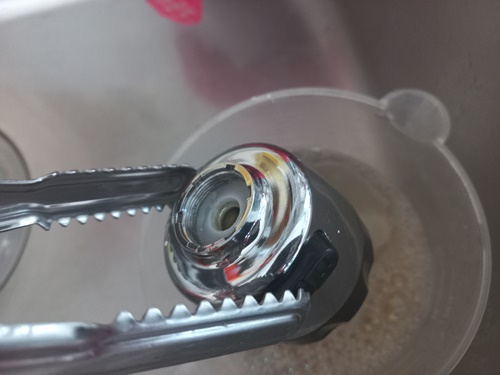수전을 과탄사소다 물에 담궈 둔 후엔 이제 나머지 부분들을 세척해 주세요.