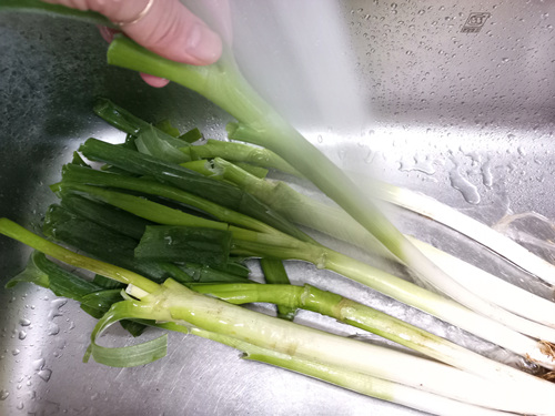 다듬을땐 뿌리 하나씩 잘라야 해요. 한꺼번에 칼로 자르면 안 보이는 대파가 사정없이 잘려 나가니까요.