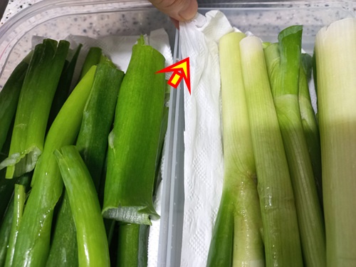 파를 깨끗이 씻어 보관만 잘해도 다 먹을때까지 신선하다는 사실..요~ 키친타월 때문이죠.