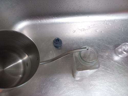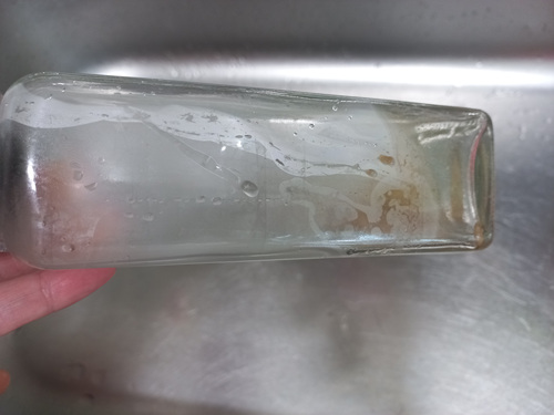 병을 흔들면 기름병에 있던 물이 뿌옇게 되는데요. 이 상태가 되면 기름병에 묻은 기름이 제거되는 상태랍니다.