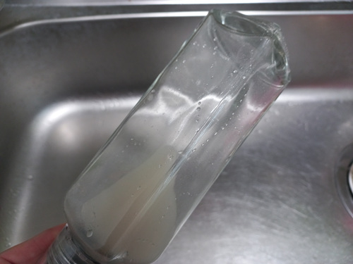 병을 흔들면 기름병에 있던 물이 뿌옇게 되는데요. 이 상태가 되면 기름병에 묻은 기름이 제거되는 상태랍니다.