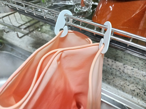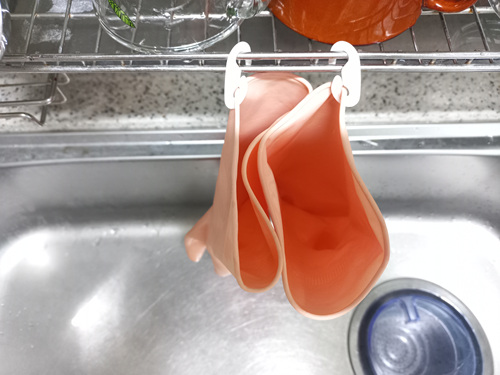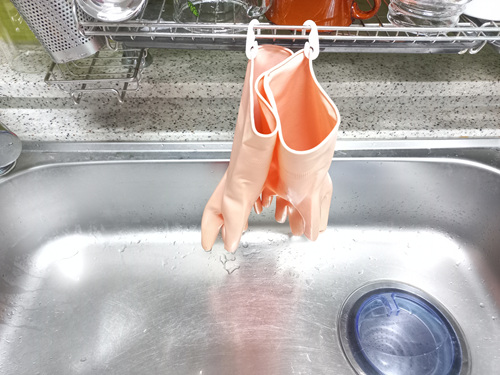 고무장갑을 사용하고 평소 이렇게 싱크대에 걸쳐 둔다면 오늘 저따라 마스크걸이로 유용하게 사용하는 방법 따라해 보실게요.