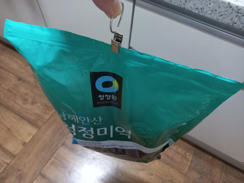 자주 먹는 미역.... 전 보이는 곳에 이렇게 걸어두고 사용해요. 아무리 큰 대용량이라도 정리만 잘하면 절대 지저분해지지않는답니다.