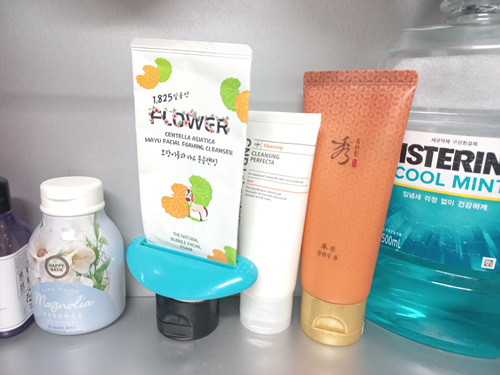 폼클렌징 다 사용할때가 되면 손으로 힘주어 짜기 쉽지 않은데요. 그때 치약을 알뜰하게 짜는 도구를 이용해 보세요. 한결 쉽게 남아 있는 자투리 폼클렌징을 사용할 수 있습니다.